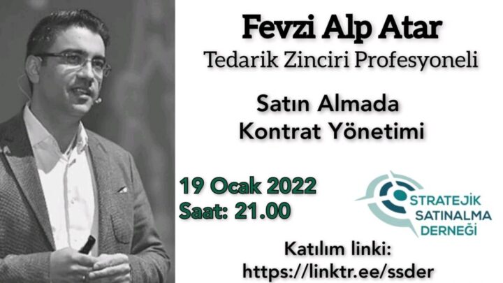 SSD Eğitim 11’de Sn. Fevzi Alp Atar ile 19.01.2022 Saat 21:00 de Satın Alma da Kontrat Yönetimi üzerine eğitimimizi gerçekleştirdik. Değerli katkıların ve katılımlarından dolayı Sayın Fevzi Alp Atar Bey’e teşekkür ediyoruz. Eğitim Videosunu Aşağıdaki Linkten İzleyebilirsiniz.